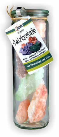 SALZKRISTALLEN-MIX HALIT UND ROSAKRISTALLSALZ, ALPENSALZ SALZ und STEINSALZ MIT KUPFER Glass 500G
