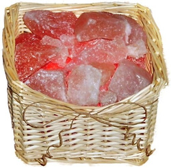 Alle Salzkristalllampen im Korb besitzen deutsche Lampenelektrik (Fassung, Birne, Ein-/Ausschalter, Zuleitung).